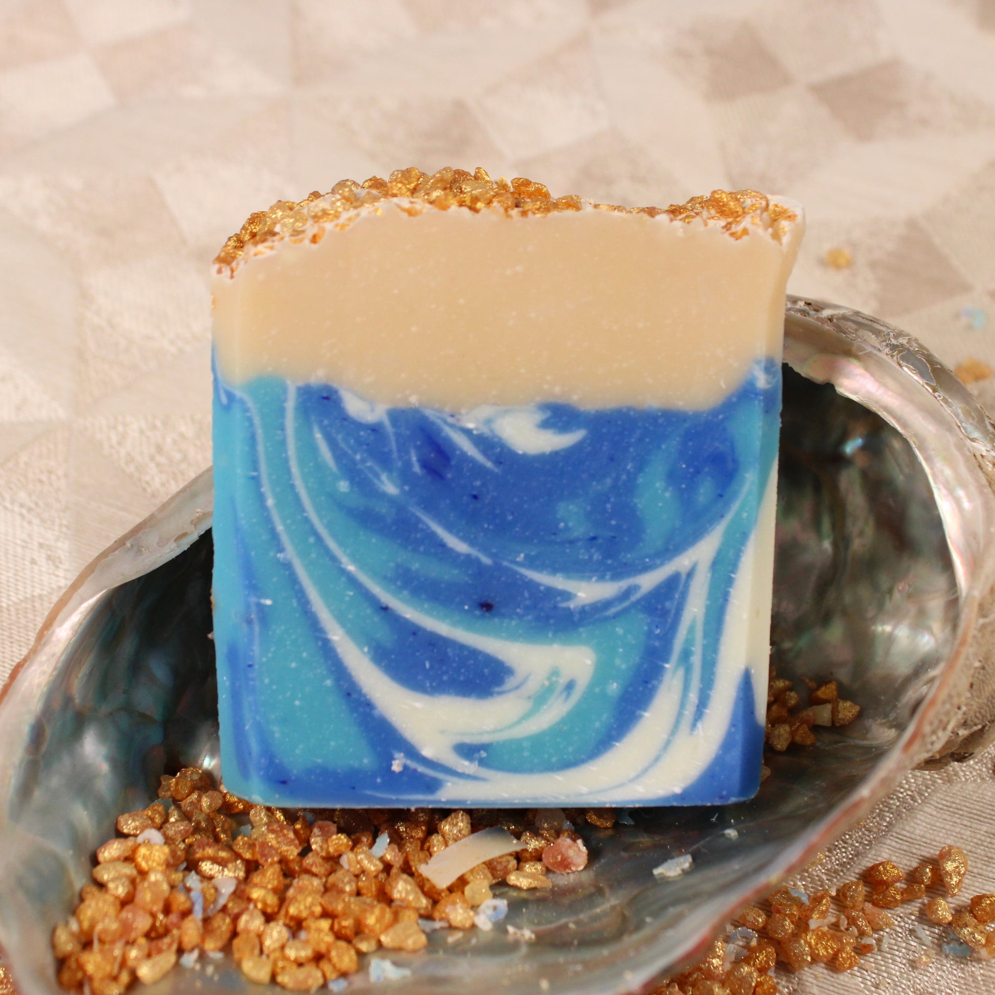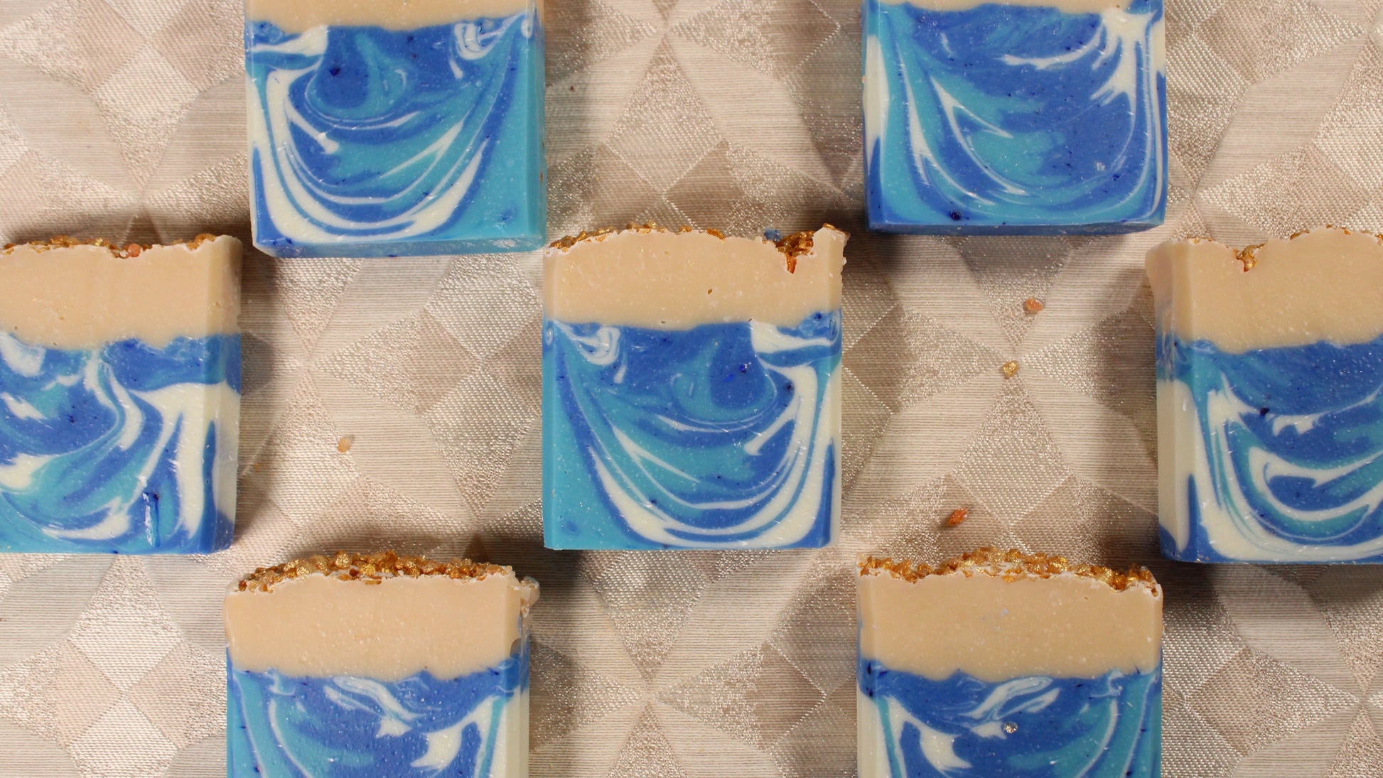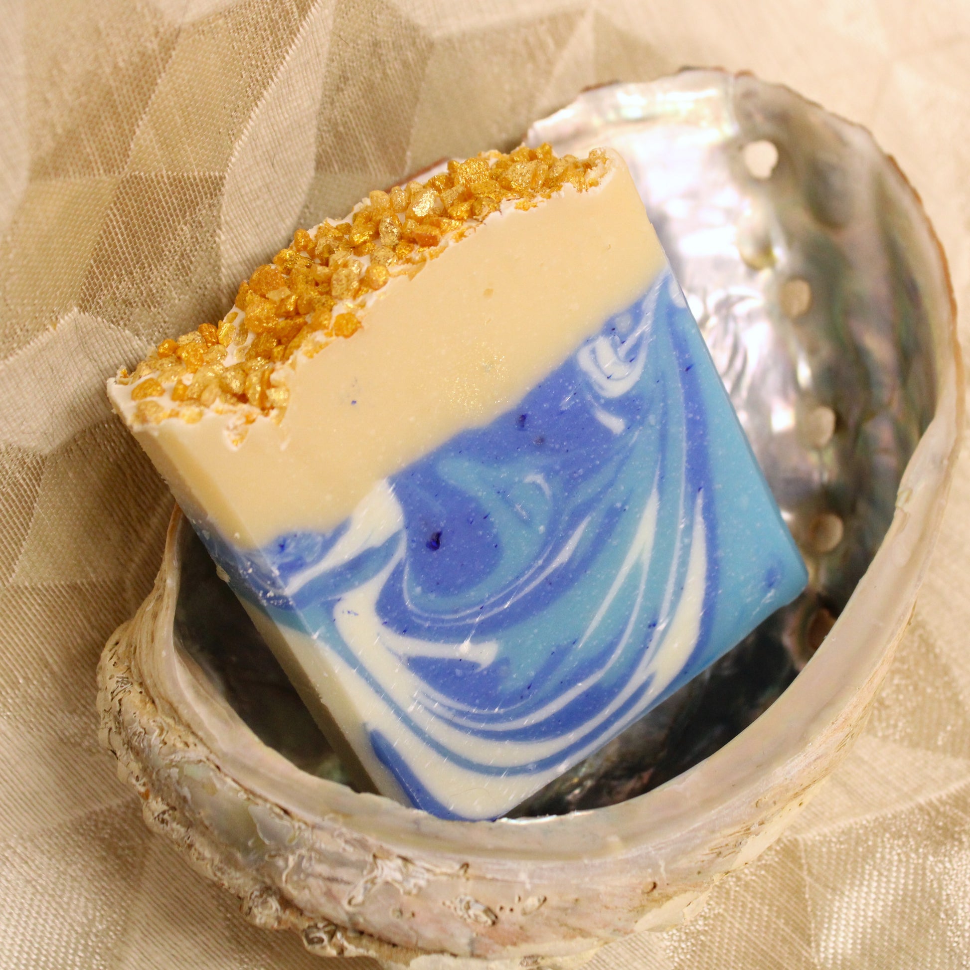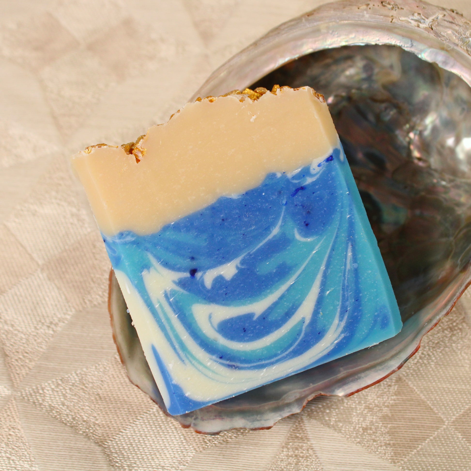 This soap is reminiscent of crashing waves on a shore, and has the fragrance to match. It has a very light scent, which is a little fresh, a little plant-y. It smells like being on the seaside.